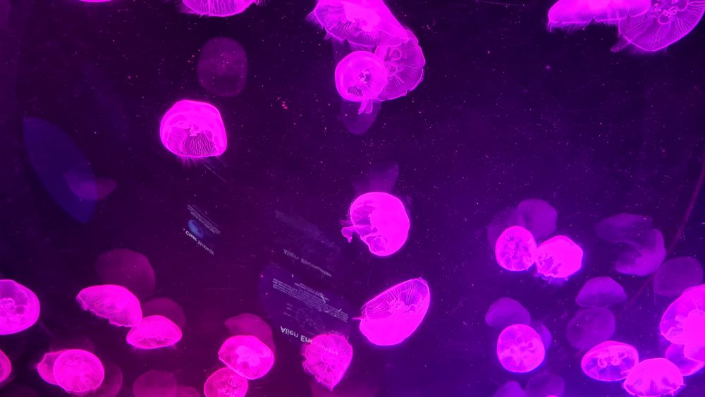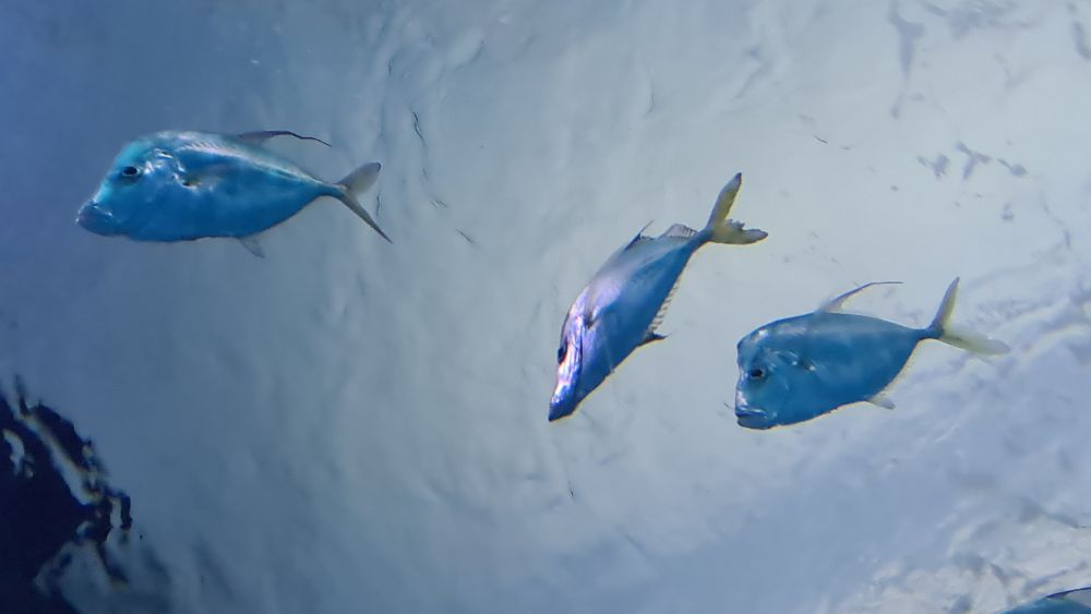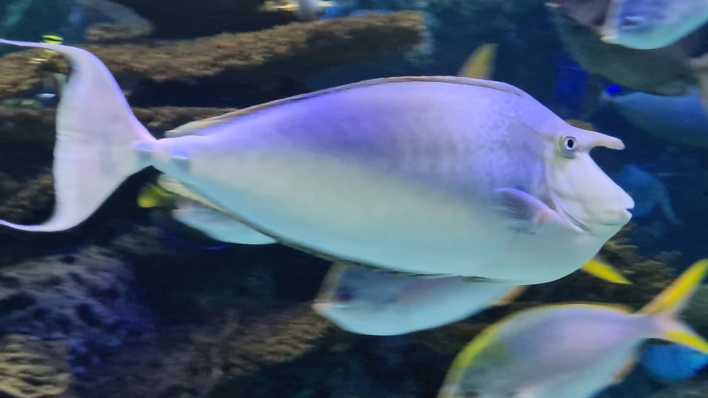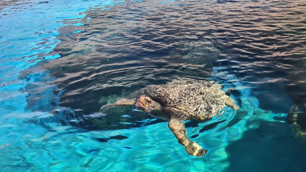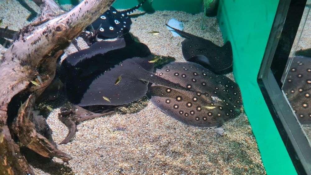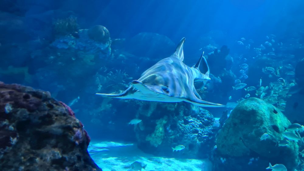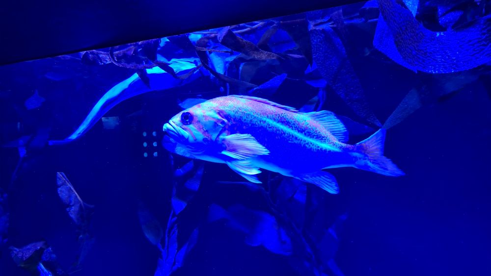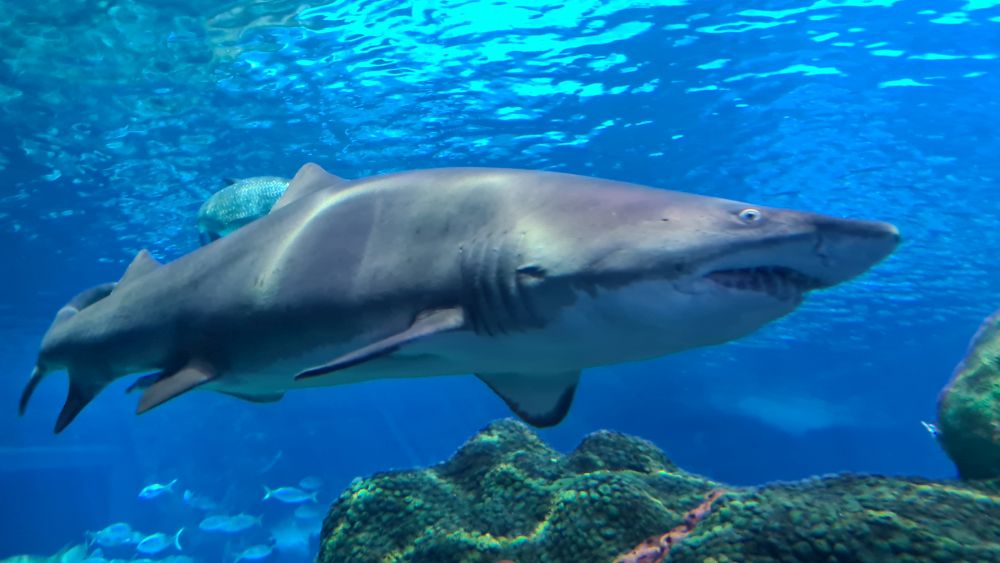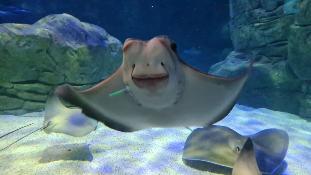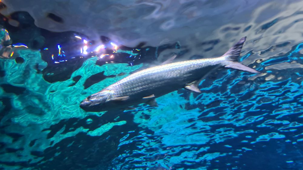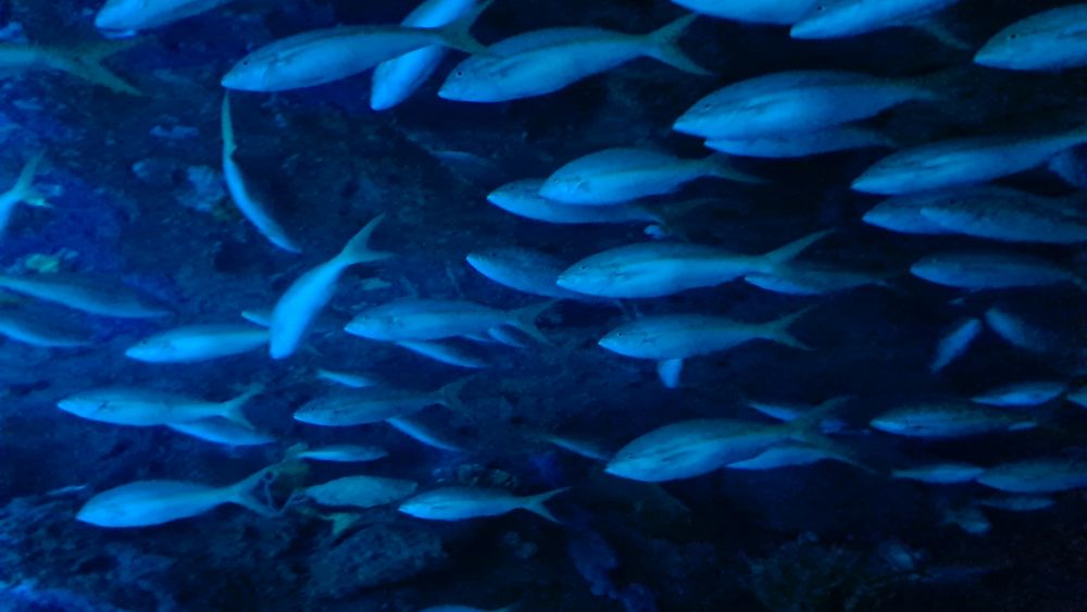 Und dann kamen wir zur Hauptattraktion: das große Aquarium, in denen auch Haie schwammen. Auf einem Laufband wurden wir etwa 15 Minuten lang durch das Aquarium gefahren. Da war so beeindruckend, dass wir die Fahrt gleich zweimal gemacht haben.