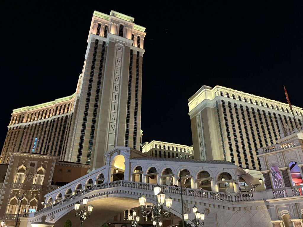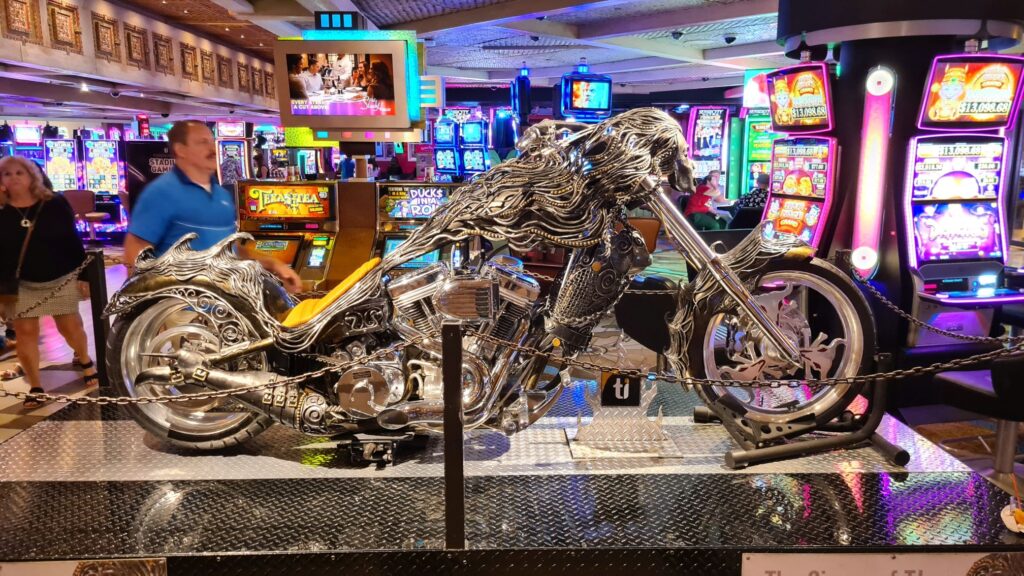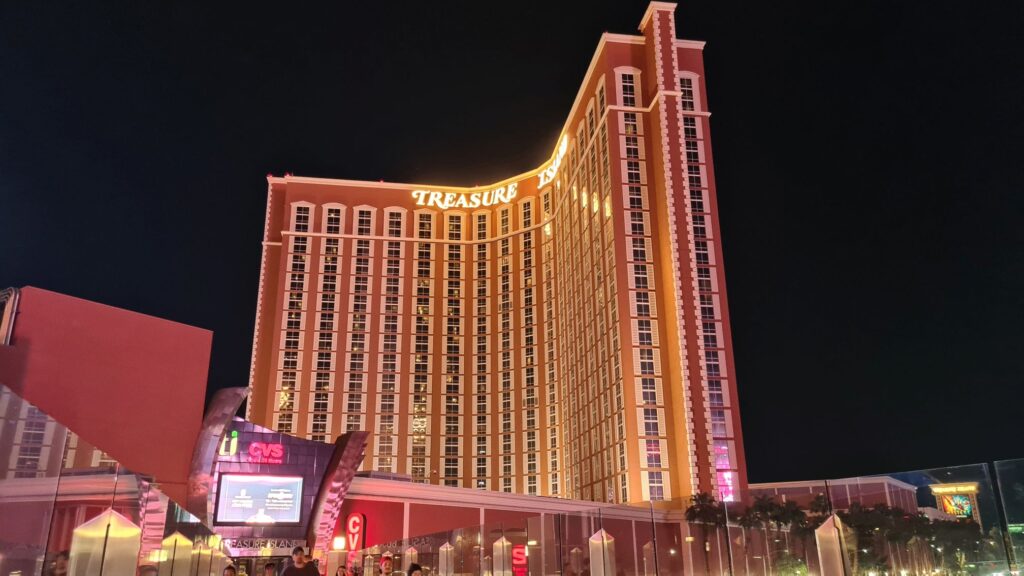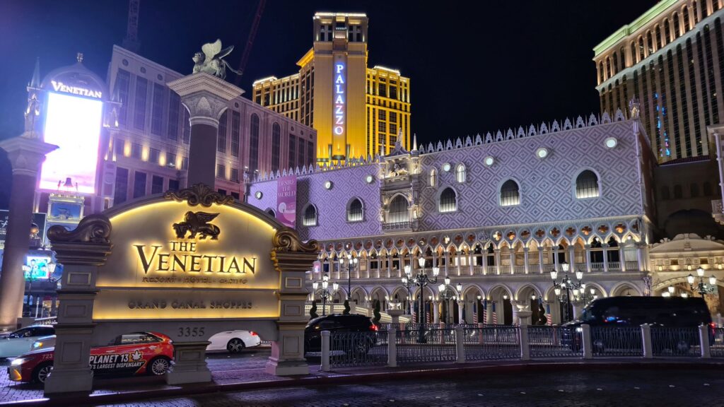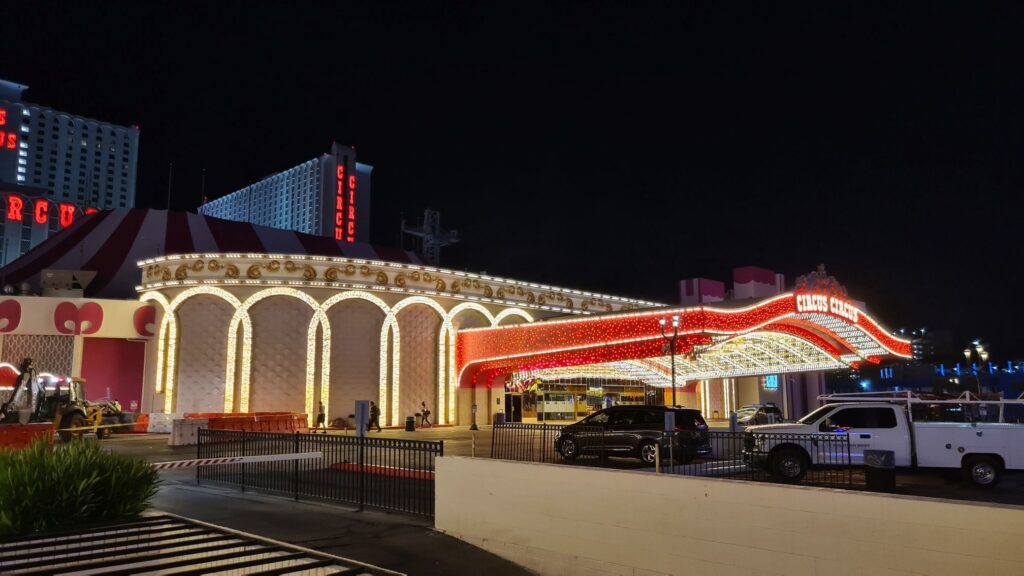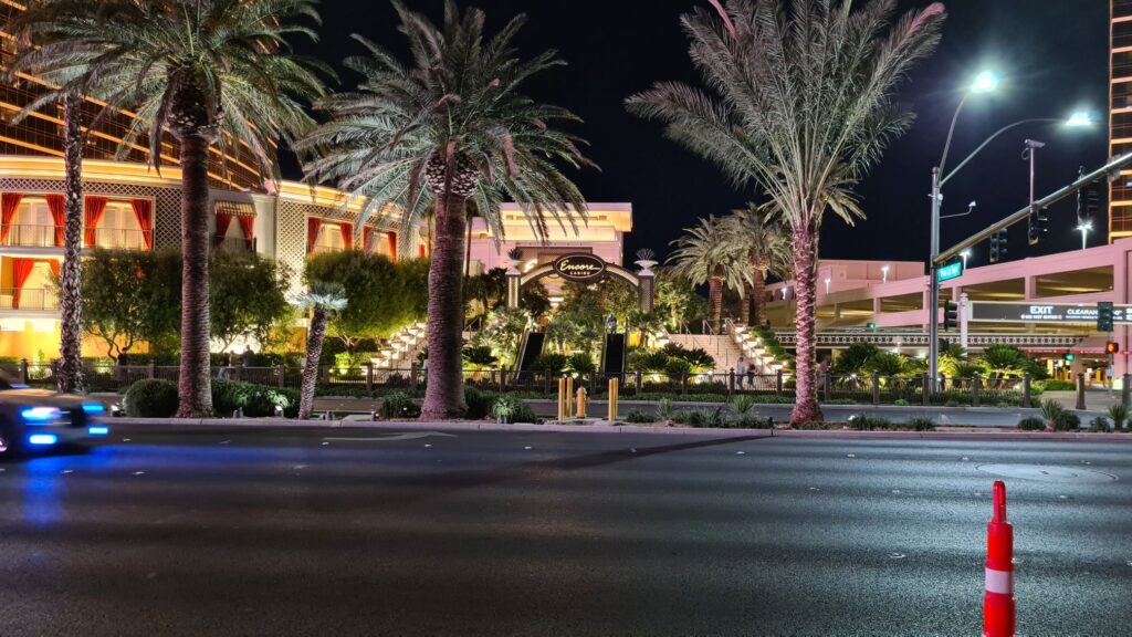 Zum Abendessen hatten wir uns ein Buffet in einem der zahlreichen Casinos vorgenommen, eine Recherche zeigte dann aber, dass nach Corona noch längst nicht alles wieder so war, wie davor. Längst nicht mehr jedes Casino bot ein Buffet an, einige auch nur zum Frühstück und mittags, andere auch nur an bestimmten Tagen. Also sind wir so los und in der einsetzenden Dunkelheit den Strip entlang gegangen.