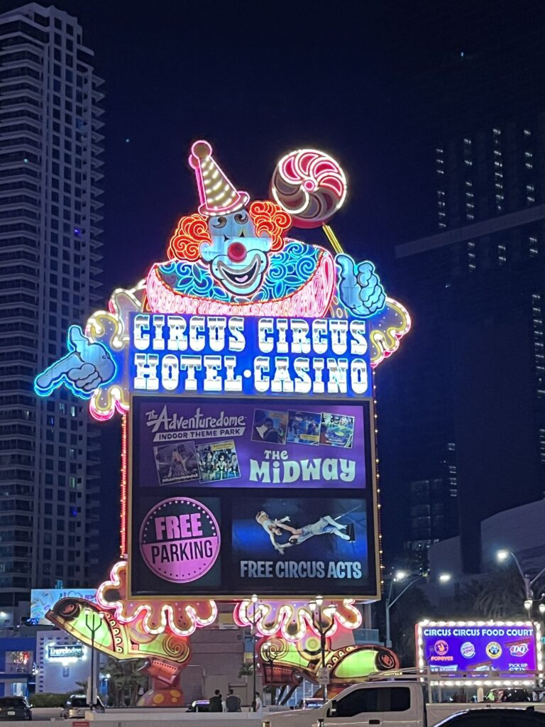 Über den Strip sind wir zum Circus Circus gefahren, wo wir unser Wohnmobil auf dem dortigen Campingplatz abstellen konnten. Naja, ein großer Parkplatz halt, aber mit Strom- und Wasseranschluss. Und einen Pool gab es auch. Es war hier in Las Vegas sehr heiß, das waren wir von den Tagen davor nicht mehr gewöhnt. Zum Glück hatten wir eine Klimaanlage, die tapfer gegen die Hitze ankämpfte.