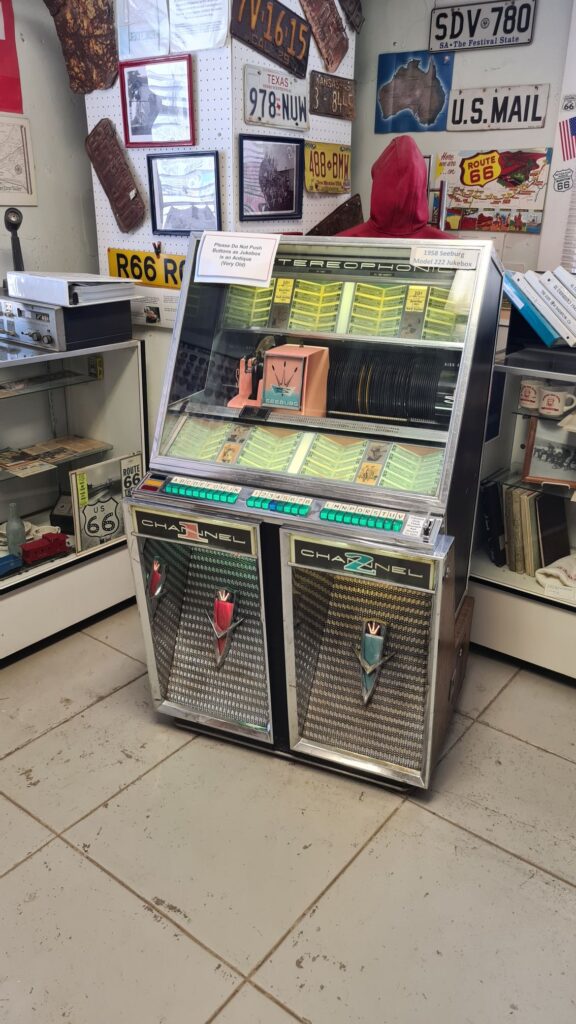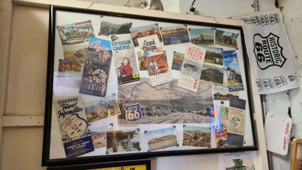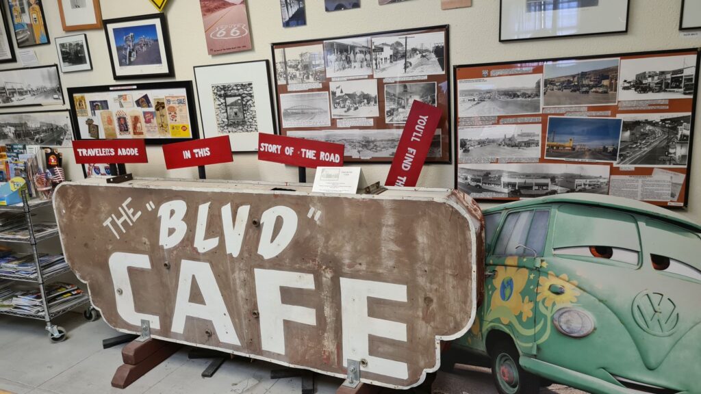 Das Museum zur Route 66 besuchten wir als erstes. Es erwies sich als Sammelsurium von großen und kleinen Gegenständen mit Bezug zur Geschichte der Route 66. Vom Ford Mustang bis zum Werbeprospekt aus den 1940ern, vom Originalschild eines Cafes bis zum Spielzeugauto war alles dabei. Aber das Museum war ganz nett gemacht und der Eintritt frei.