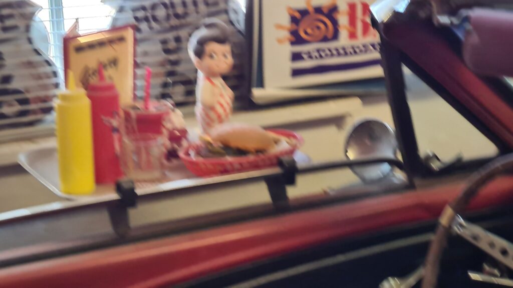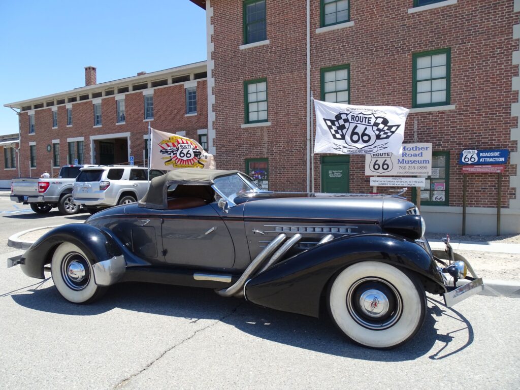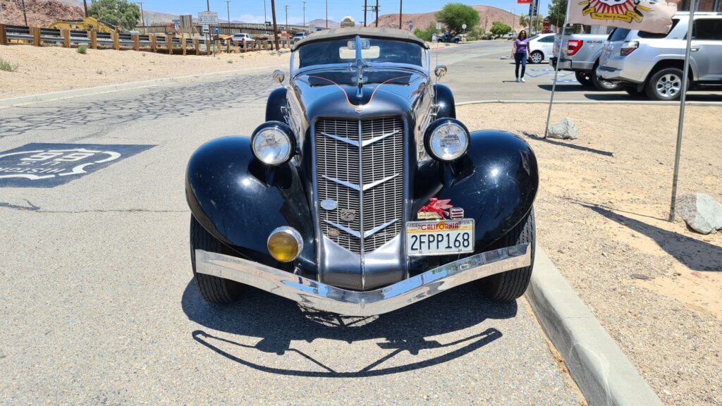 Als wir gerade weiterfahren wollten, kam ein toller Oldtimer zum Route 66 Museum gefahren, der Fahrer schaute sich offenbar auch die Sammlung an. Also gingen wir noch einmal zurück, um das Auto zu betrachten.