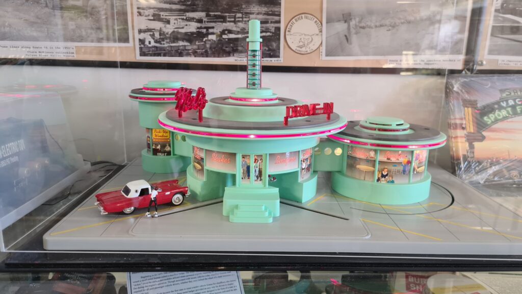 An diesem Morgen begann also unsere letzte Etappe. Bis nach Los Angeles waren es wieder einige Meilen durch die Wüste. Aber vorher wollten wir uns noch zwei kleine Museen in Barstow ansehen, eines, dass der Route 66 gewidmet war, die direkt durch Barstow führte, sowie ein kleines Eisenbahnmuseum an diesem Knotenpunkt. Beide sind in dem großen Bahnhofsgebäude untergebracht.
