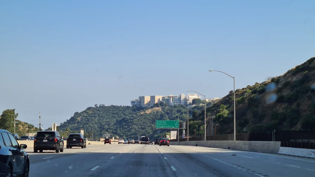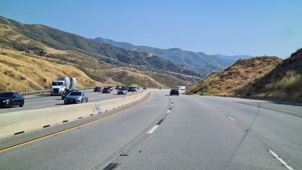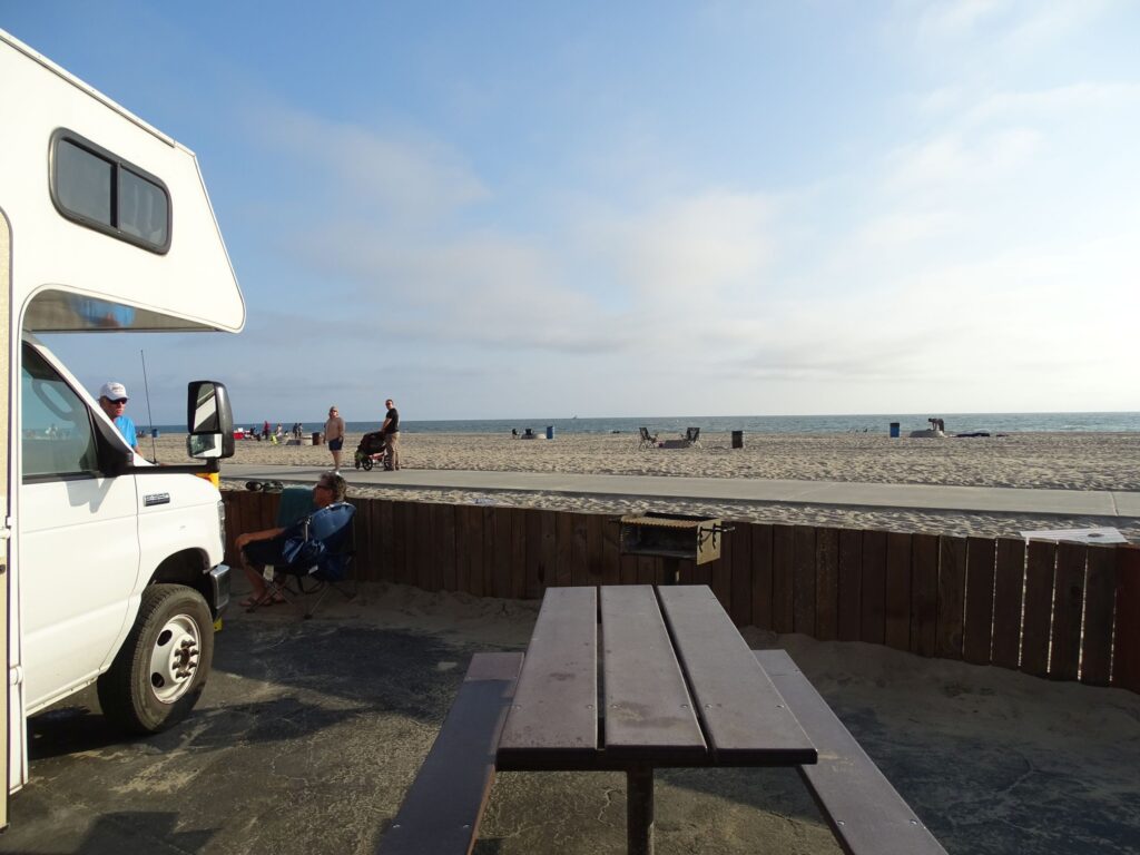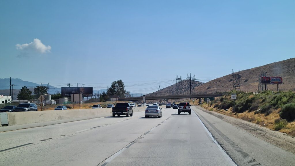 Ursprünglich wollten wir von Osten über San Bernadino nach LA einfahren, haben uns dann aber entschieden, über den nördlichen Weg zu kommen. Das war dann etwa eine Stunde mehr Fahrt, aber es war ja unsere letzte Etappe und die haben wir noch einmal richtig ausgekostet. Mittlerweile waren wir wieder auf der Interstate gelandet, durch die Berge ging es Richtung LA. Hinter einer Kurve kam dann im Dunst die Stadt ins Blickfeld. Und auch der Verkehr wurde deutlich mehr, bis wir schließlich im Freitagsnachmittags-Stau standen. Trotzdem erreichten wir unseren Campingplatz direkt am Strand noch deutlich vor dem Sonnenuntergang.