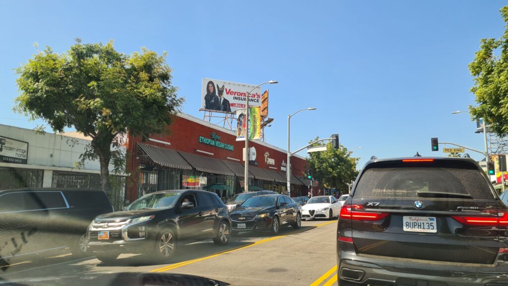 Durch die Stadt fuhren wir dorthin. Dass Los Angeles eine Megacity aus vielen kleinen Städten ist, merkt man bei der Durchfahrt, es war ein steter Wechsel von kleinen Einfamilienhäusern und Zentren mit vielen Geschäften und Hochhäusern.