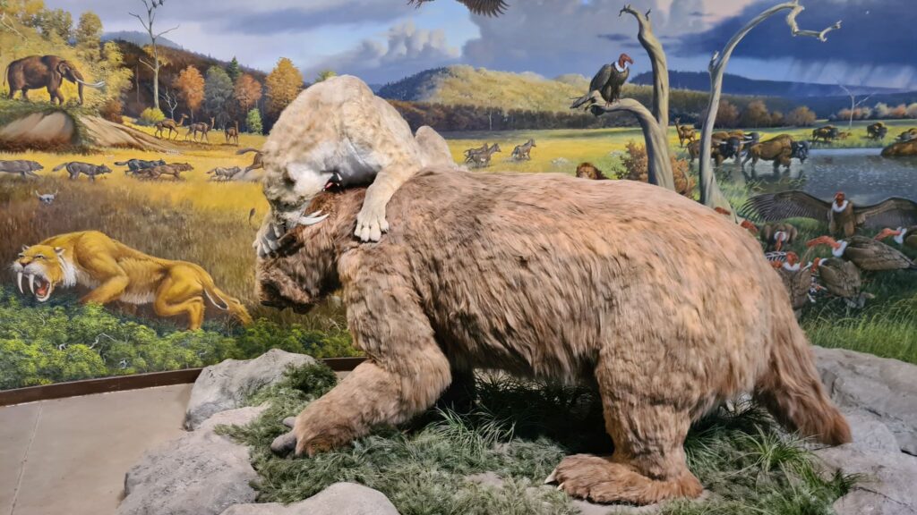 Bei den Tar Pits angekommen schauten wir uns zunächst das dortige Museum an. Hier sind sehr viele Fundstücke ausgestellt und man kann auch live bei der Konservierung zusehen. In dem Park sind dann auch die großen und kleinen Tar Pits zu sehen.